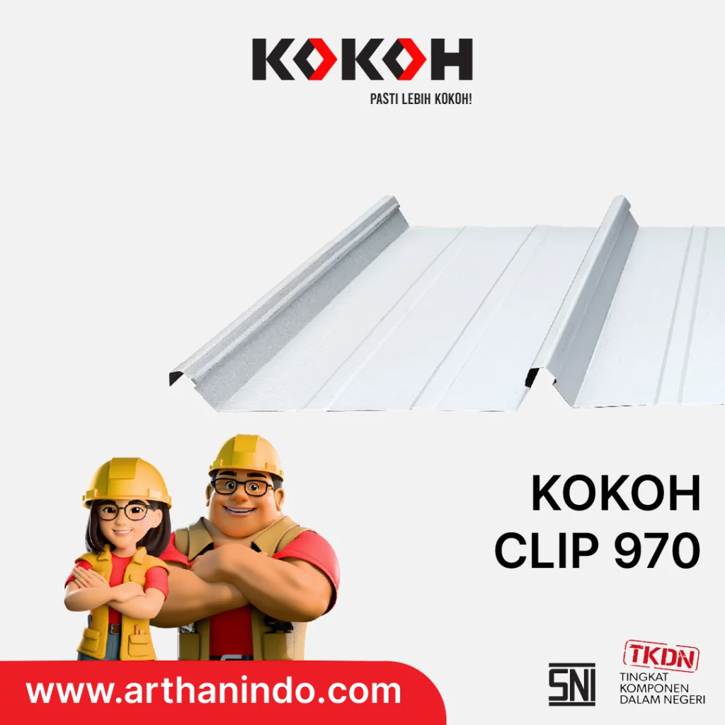 KOKOH CLIP 970 Lebar Efektif 970 mm Tinggi Gelombang 45 mm Standar Material SNI 4096-2007 Ketebalan Produk (mm) 0.45 0.50